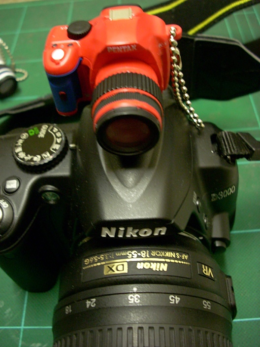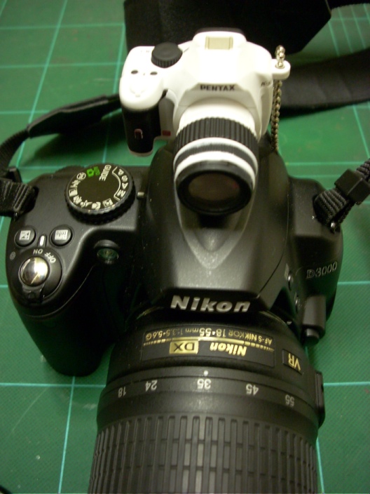 下にアクセサリーシューが付いてるからカメラの上に付けたりも出来る。ただ、ニコンの上にペンタックスっていうのも変だけど…。手持ちにペンタックスが無いもんで…。